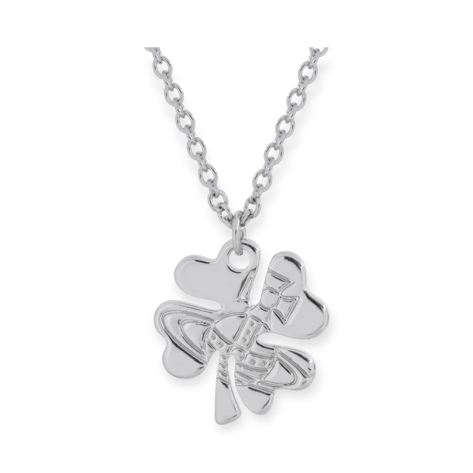 Lucky Clover Staple Engraved Orb Pendant Necklace Gold & Silver (2 Colors)