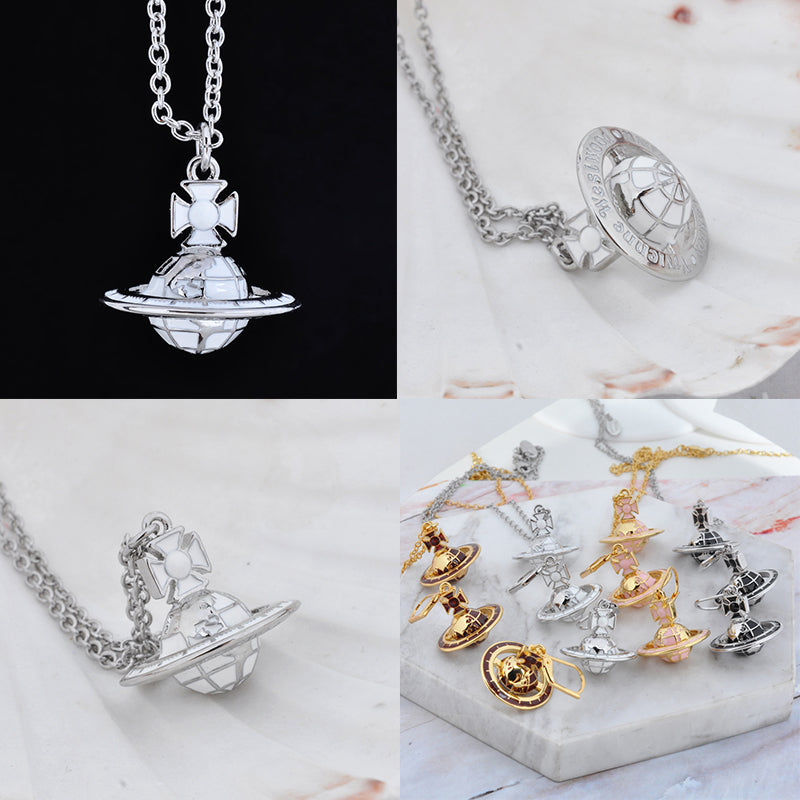 Earth Globe Abstract Design Orb Pendant Necklace (4 Colors)
