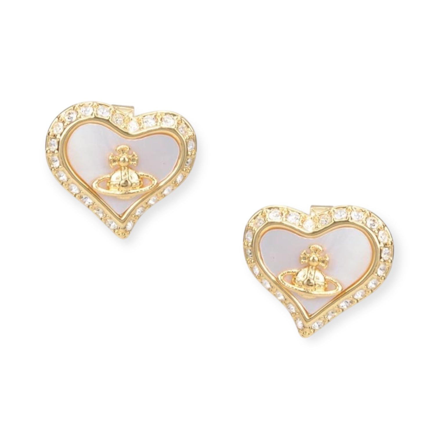 Heart Shaped Shape Plate Design Colorful Pendant Gem Studded Earrings (4 Colors)