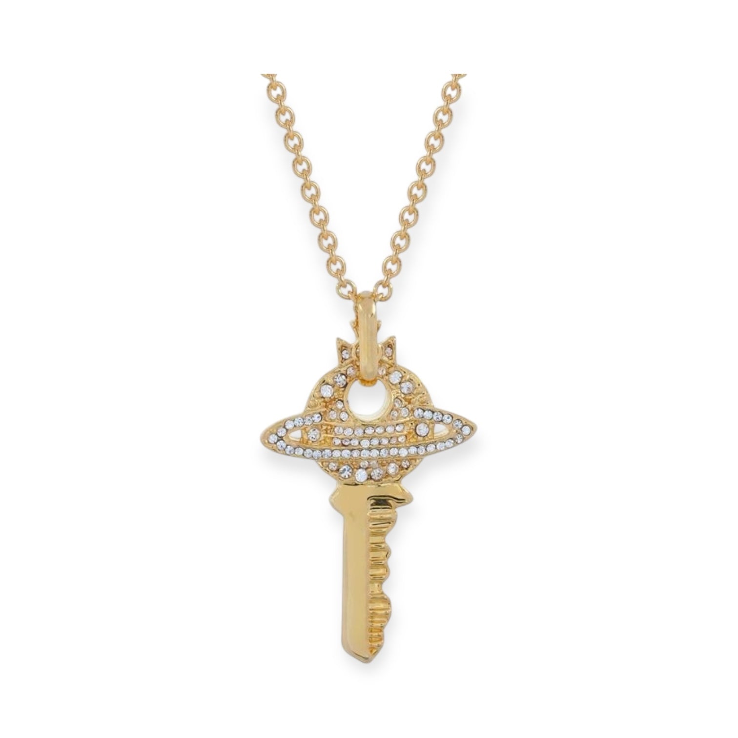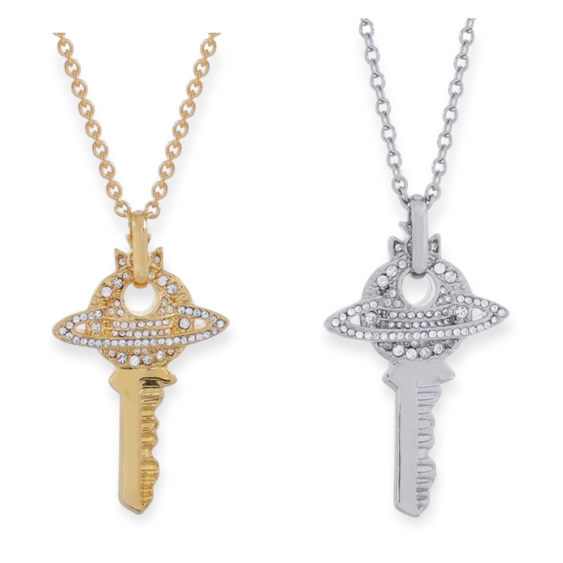 Key Pendant Silver Gem Studded Necklace Gold & Silver (2 Colors)