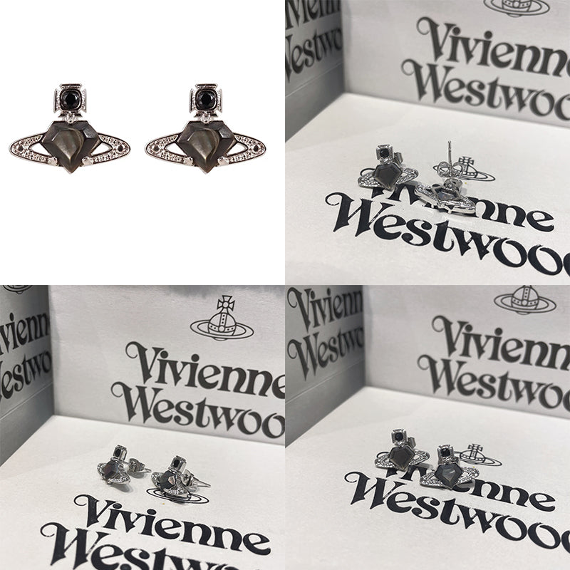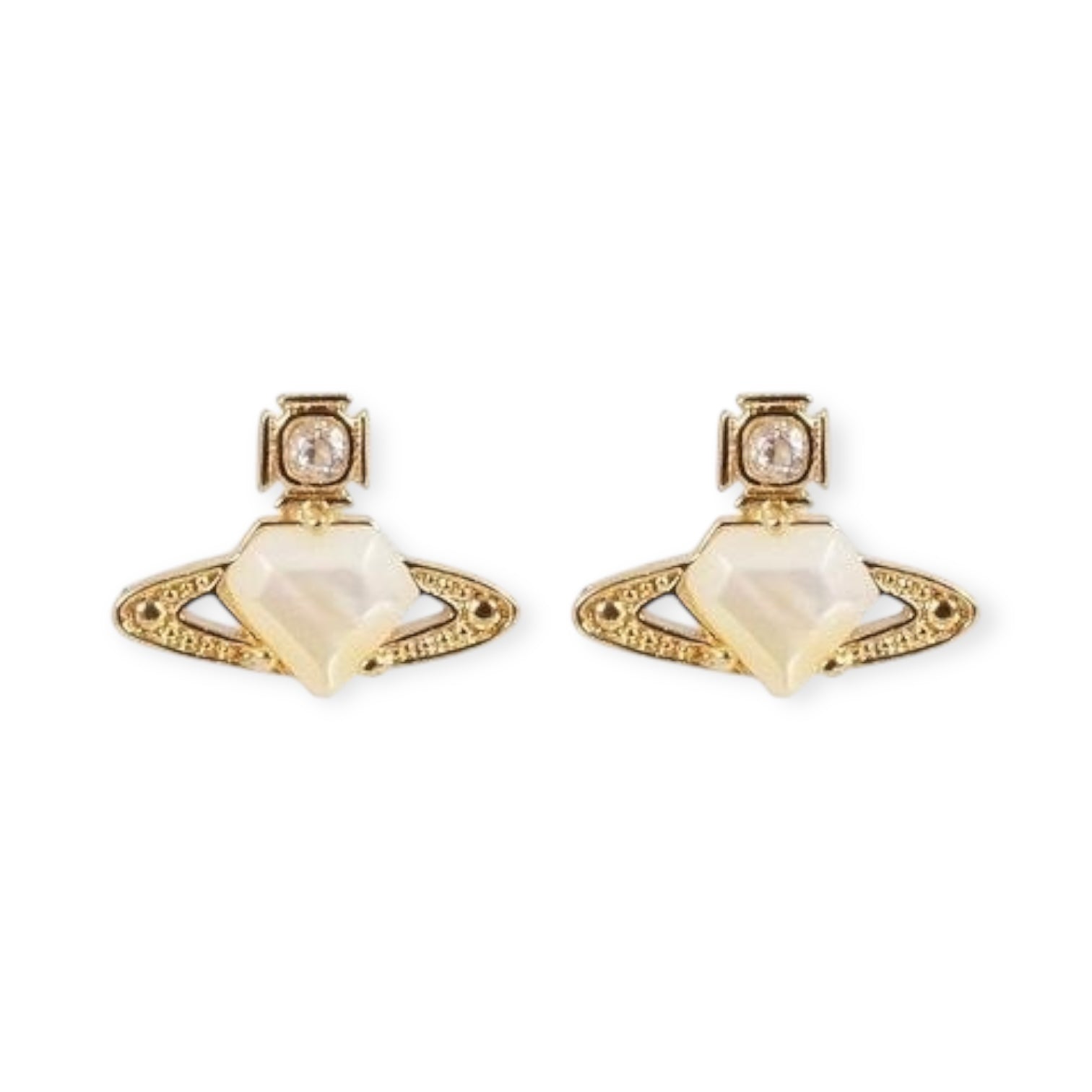 Mini Diamond Pentagon Heart Shaped Orb Pendant Studded Earrings (3 Colors)