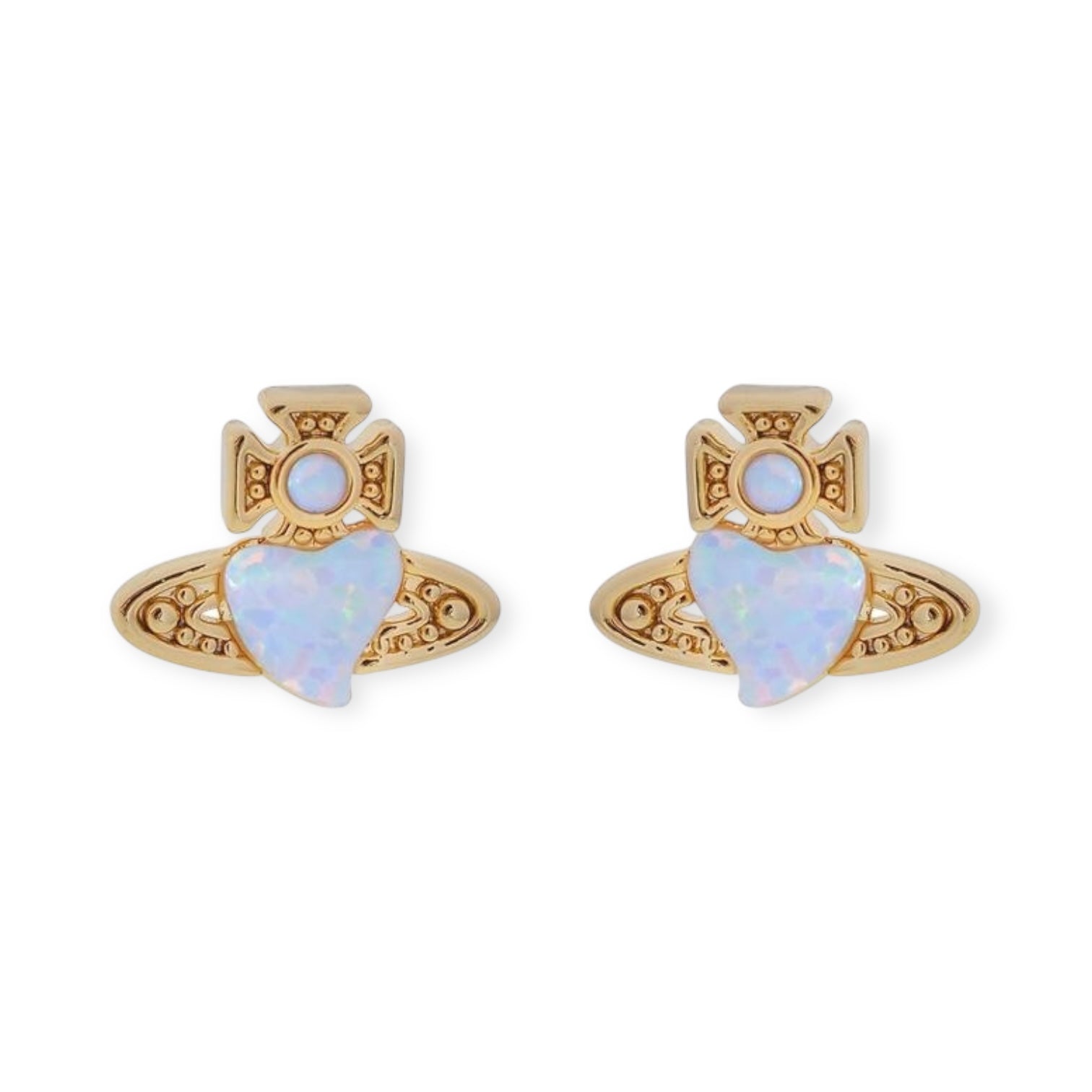 Mini Heart Orb Iridescent Design Pendant Stud Earrings (3 Colors)