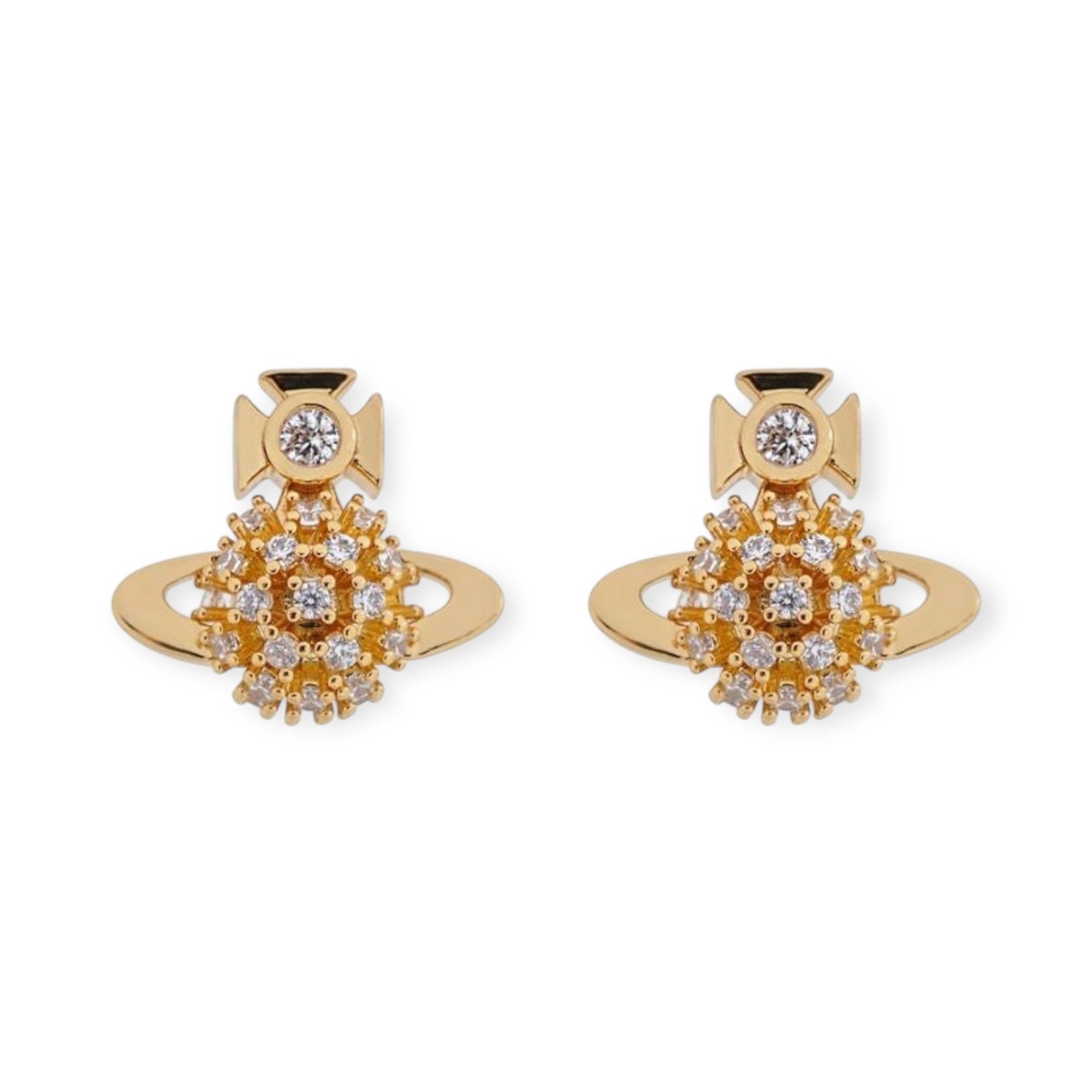 Multi Gem Crystal Design Abstract Orb Pendant Gold & Silver Stud Earrings (2 Colors)