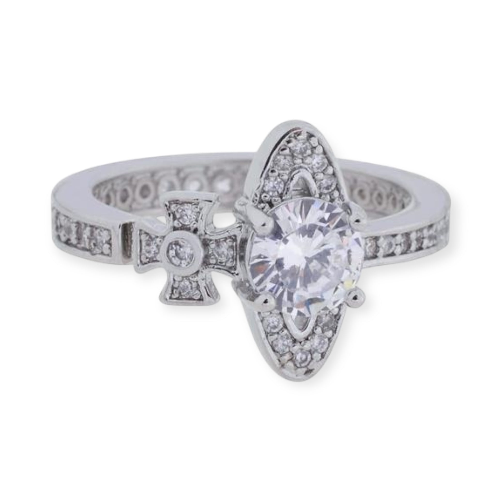 Sideways Orb Design Gem Studded Ring (6 colors)