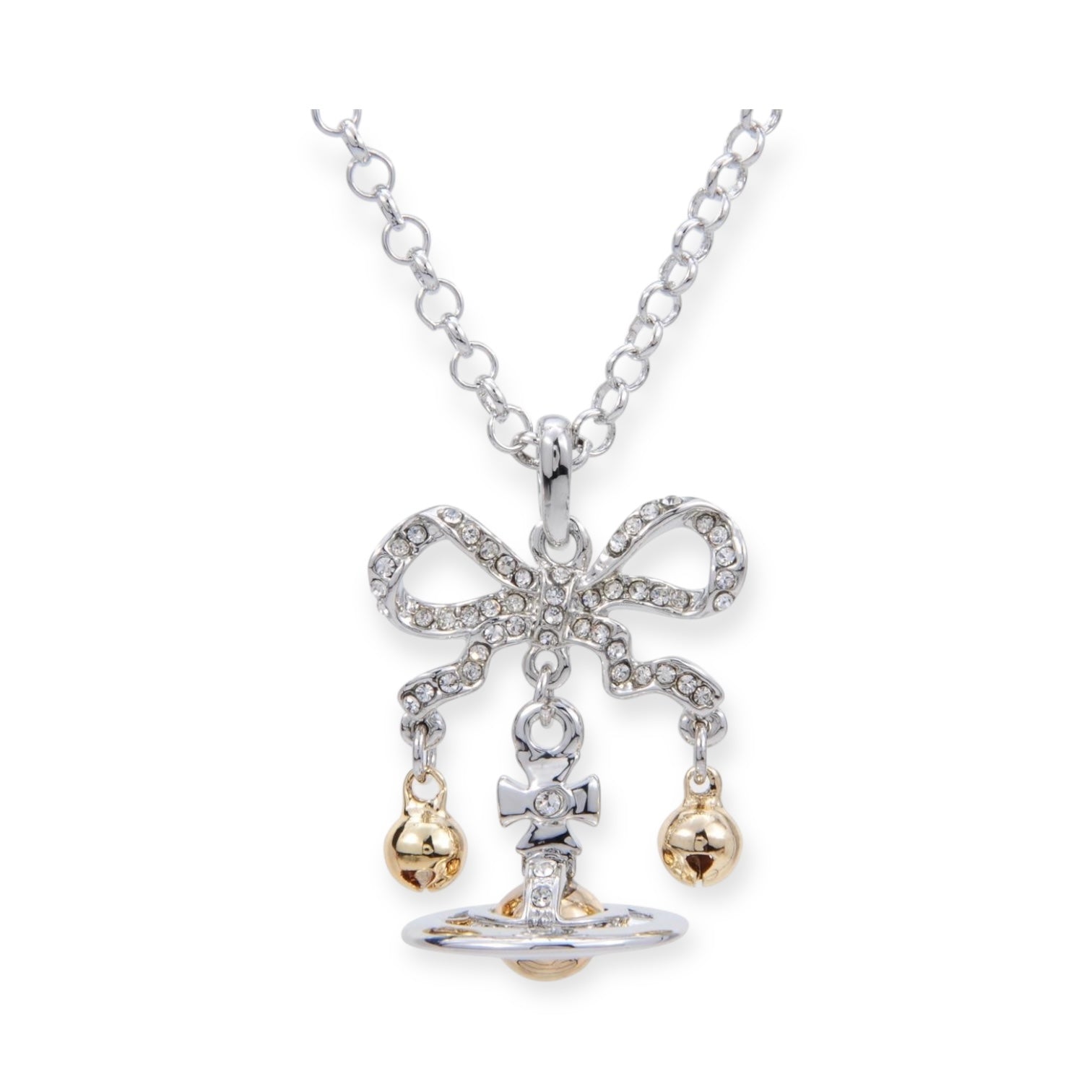Tied Ribbon Bow Jingle Bells Gold Silver Orb Pendant Necklace